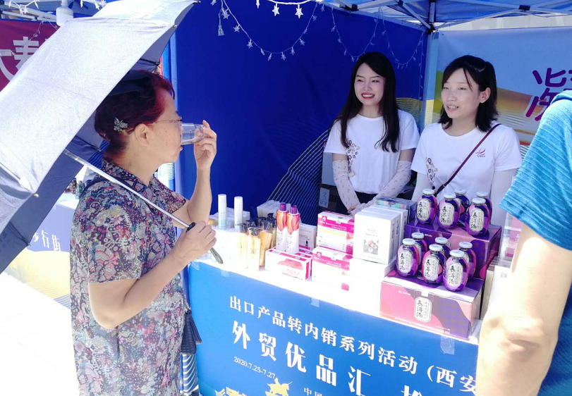 7月30日,由国家商务部、陕西省人民政府主办,商务部外贸发展局、陕西省商务厅、西安市人民政府承办的“外贸优品汇,扮靓步行街”出口产品转内销系列活动在大唐不夜城步行街落下帷幕。本次展销会于7月25日开幕,共有省内百余家企业参展,其中,三八妇乐也应邀参加了本次展会。特别值得一提的是,三八妇乐还在本次展会上展示了全新上市的慕洱汤原味木耳饮,并受到了参展商和消费者的关注。